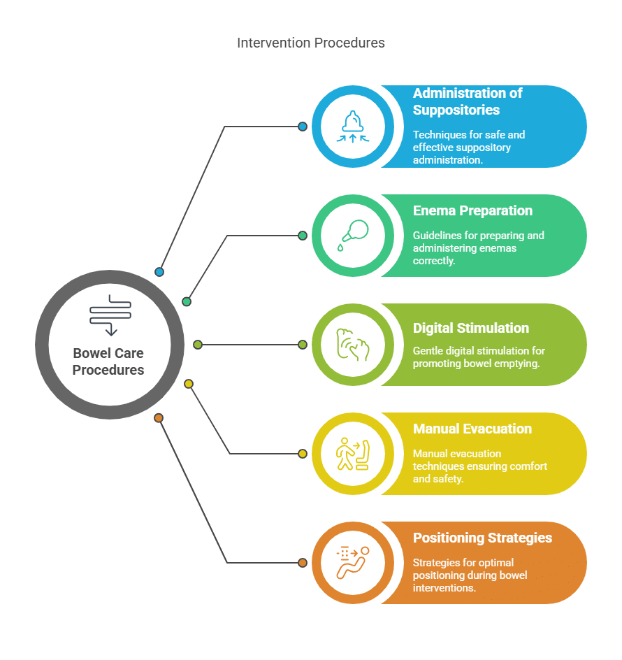 Given the nature of bowel care, rigorous hygiene and infection control practices are paramount. Training covers hand hygiene techniques, appropriate use of personal protective equipment (including gloves, aprons, and face protection when indicated), and environmental cleaning requirements.