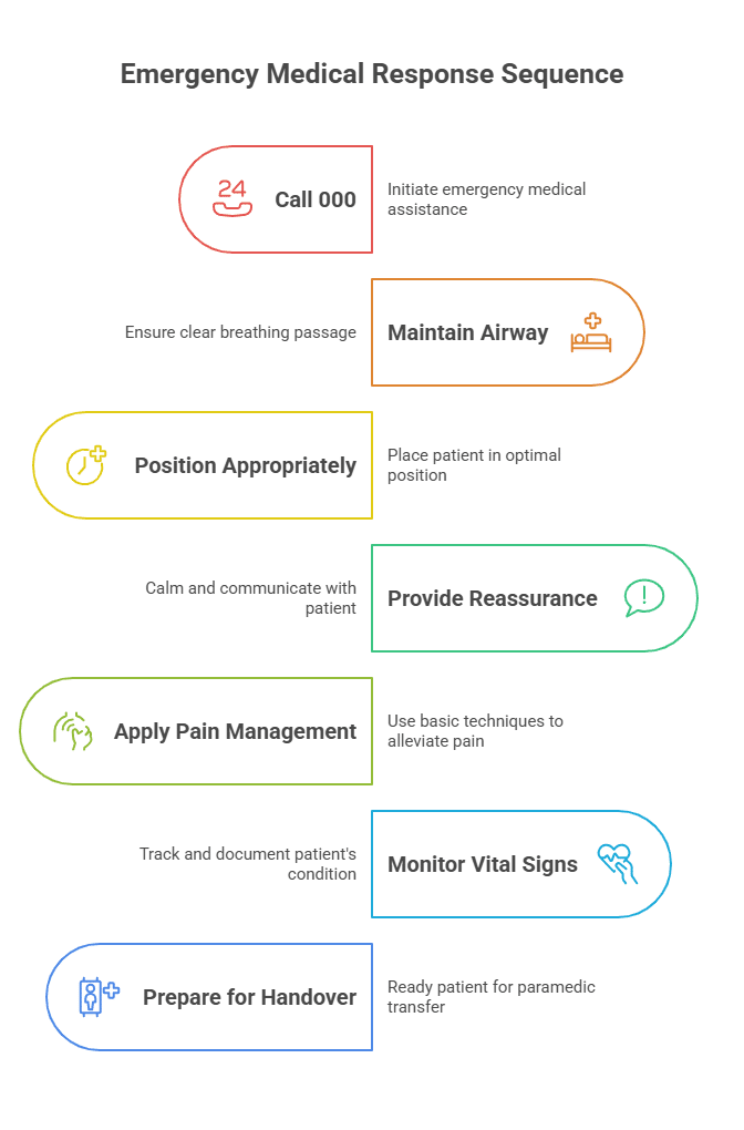 - Know Your Scope: Recognise when pain requires emergency services (000) or advanced medical care. Red flag symptoms include altered consciousness, signs of shock, or severe pain unresponsive to basic interventions.